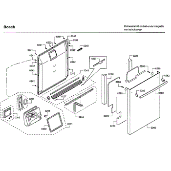 The Inner Door is an OEM part for Bosch dishwashers. It serves as the protective barrier between the dishwasher's interior and the outer door that keeps the water and detergent contained within the dishwasher, preventing leaks and ensuring efficient cleaning.