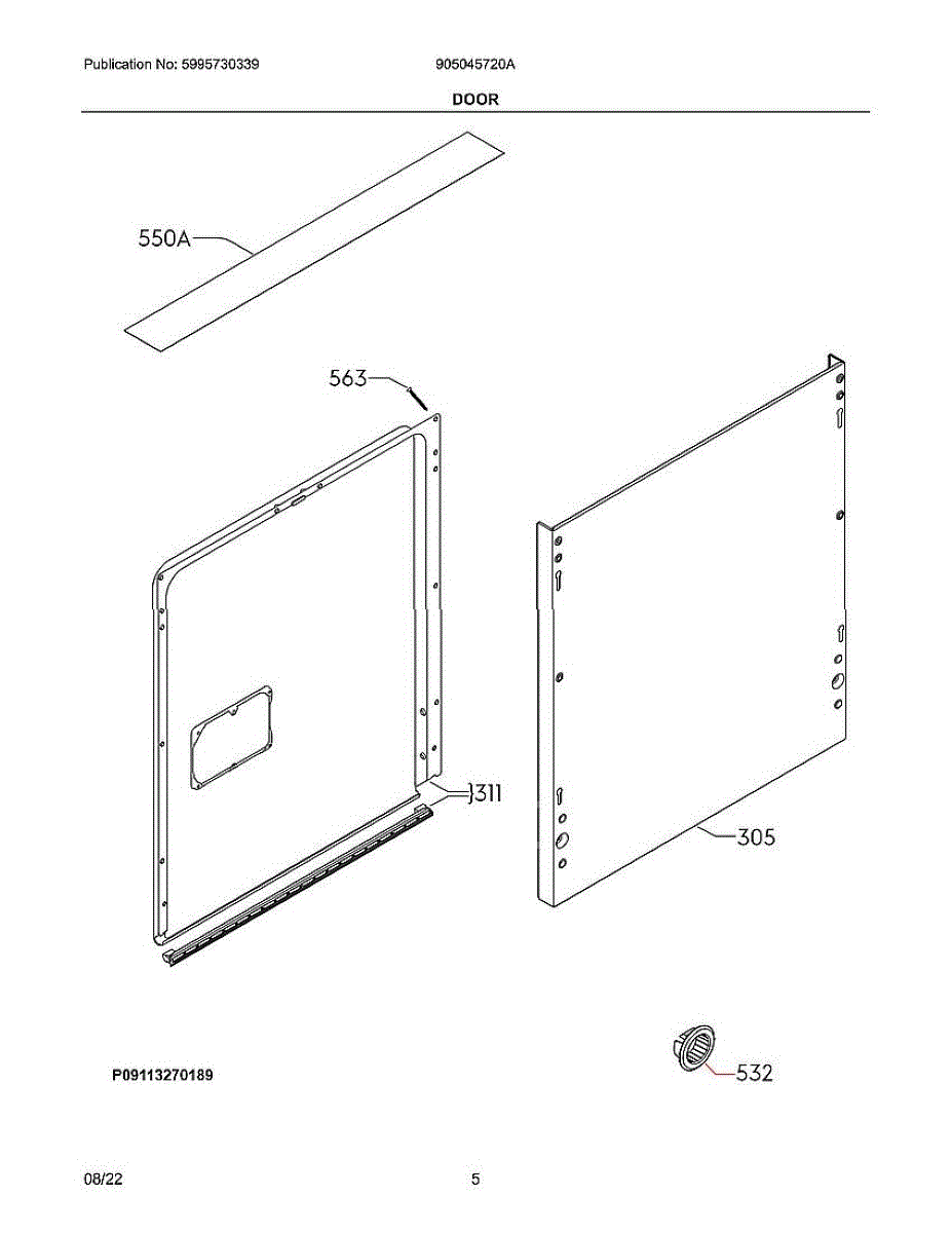 Inner door panel liner for your dishwasher. Hard plastic component that forms the interior door surface. Replace if cracked, warped, or damaged.