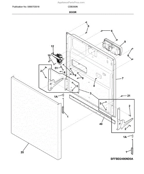 Parts for Crosley CDB350NW10B: Door Parts