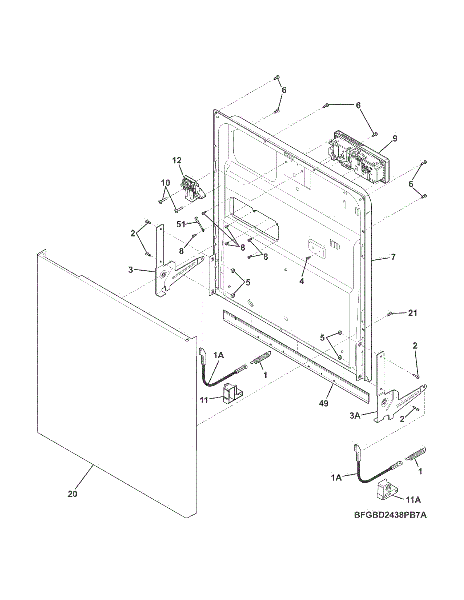 Complete dishwasher door assembly that replaces a damaged, cracked, or broken outer door panel. Restores the structural integrity and appearance of your unit.