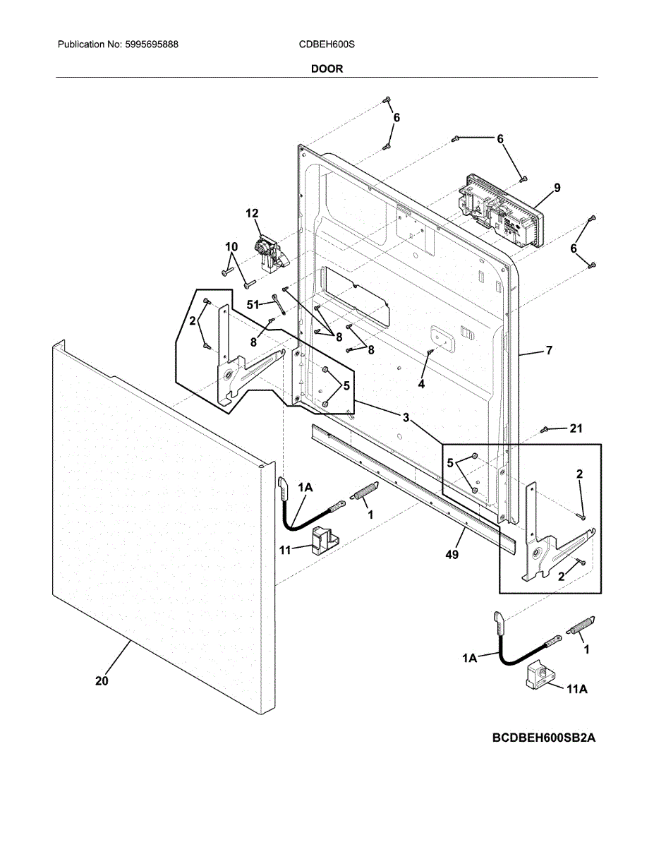 Parts for Crosley CDBEH600SW2A: Door Parts