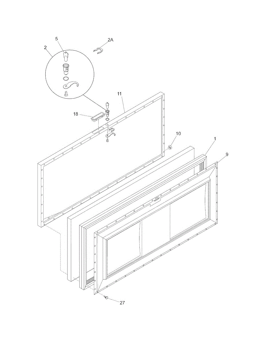 Replacement lid for chest freezers. Installs on top to seal and protect freezer contents. Replace if cracked, warped, or damaged to restore proper closure.