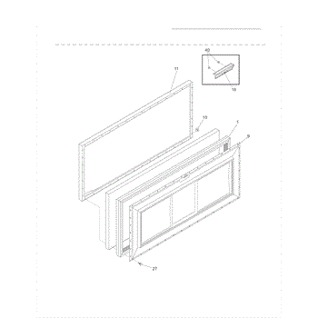 Outer door panel for chest freezers. Covers the exterior lid surface. Replace if cracked, dented, discolored, or damaged from daily use or impact.