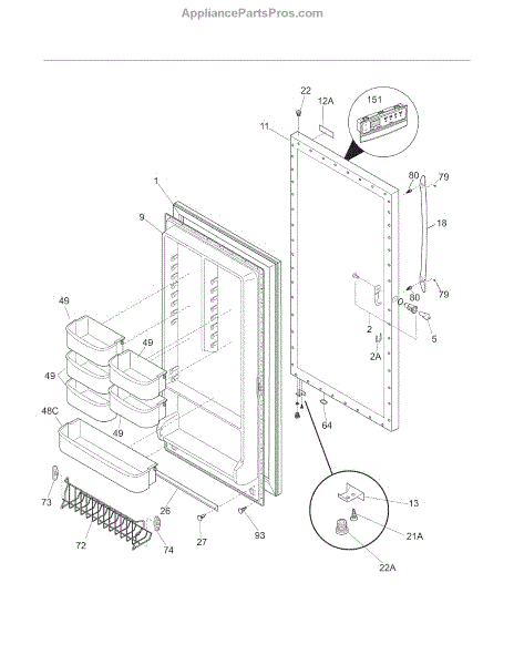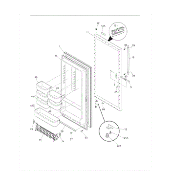 This inner door panel replaces a damaged or worn interior door surface to restore proper bin support and the refrigerator's finished appearance. It provides a stable mounting surface for door bins and internal hardware. What it does
