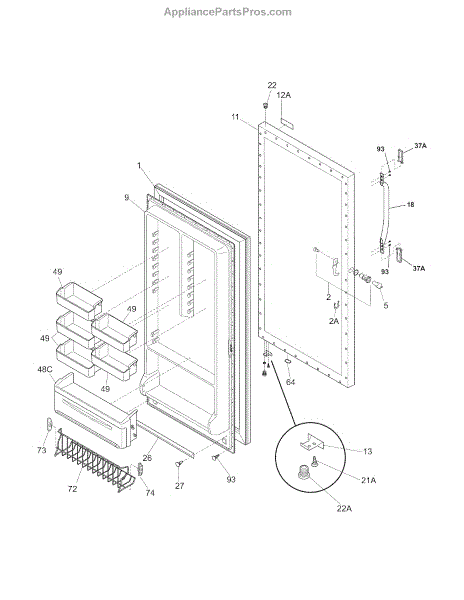 The Door Gasket is an OEM replacement part for Frigidaire refrigerators. It ensures a tight seal around the door, preventing cold air from escaping and warm air from entering the refrigerator.