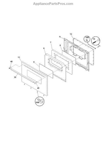 This handle mounting screw secures an appliance handle, most commonly the oven door handle, to the door or front panel. Replacing a worn, stripped, or missing screw restores a firm grip and keeps the handle aligned and secure.