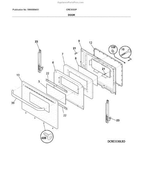 The Door Handle Kit is an OEM replacement part for Frigidaire ovens and ranges. These handles provide safe access to the oven interior. Causes of a bad handle kit can include normal wear over time of moving parts, accidental damage from impact or mishandling of the oven door, or issues with the latching mechanism. Symptoms of a bad oven door handle kit include: