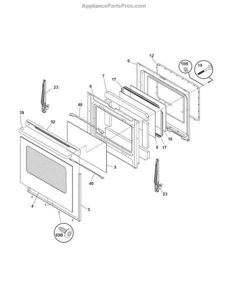 Replacement glass panel for the oven door. It restores a clear viewing window and helps maintain proper insulation when the original glass is cracked, shattered, or discolored.