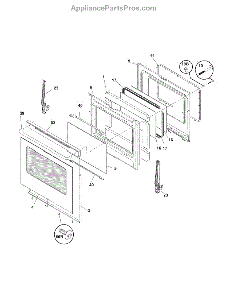 Replacement glass panel for the oven door. It restores a clear viewing window and helps maintain proper insulation when the original glass is cracked, shattered, or discolored.