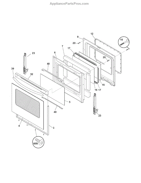 Replacement glass panel for the oven door. It restores a clear viewing window and helps maintain proper insulation when the original glass is cracked, shattered, or discolored.