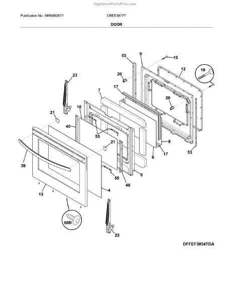 Restores smooth door operation and proper seal. Replace when door sags, won't close flush, or hinge is bent. Confirm fit with your model number.