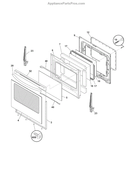 This glass assembly replaces a damaged or broken oven door viewing panel to restore visibility and help contain heat for safe cooking. It fits into the oven door frame and provides a clear window for monitoring food. What it does: