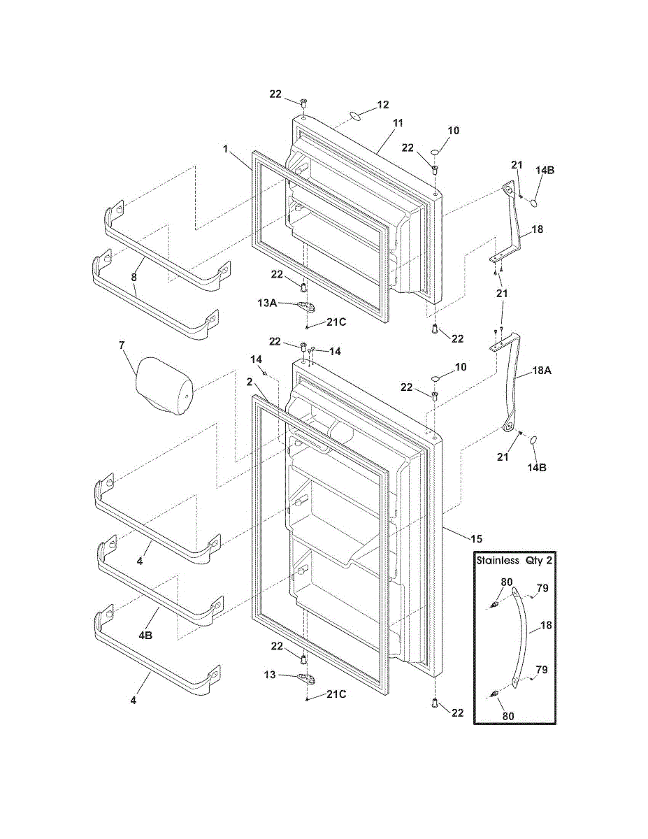 Replace a cracked, dented, or warped freezer door panel on your top-mount refrigerator. Restores appearance and proper sealing for the freezer compartment.
