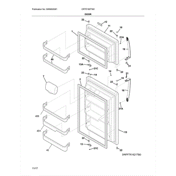 The Door Shelf Bin is an OEM replacement part for Frigidaire refrigerators. It is designed to fit on the refrigerator door, providing convenient storage space for condiments, bottles, and other small items. This shelf bin helps to keep the refrigerator organized, making it easier to find and reach items stored in the door.