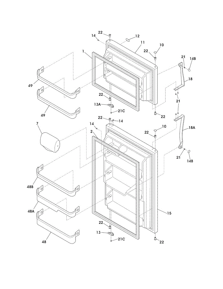 Outer door panel for top-mount refrigerators. Replaces cracked, dented, or discolored exterior door shells. Restores your refrigerator's appearance.
