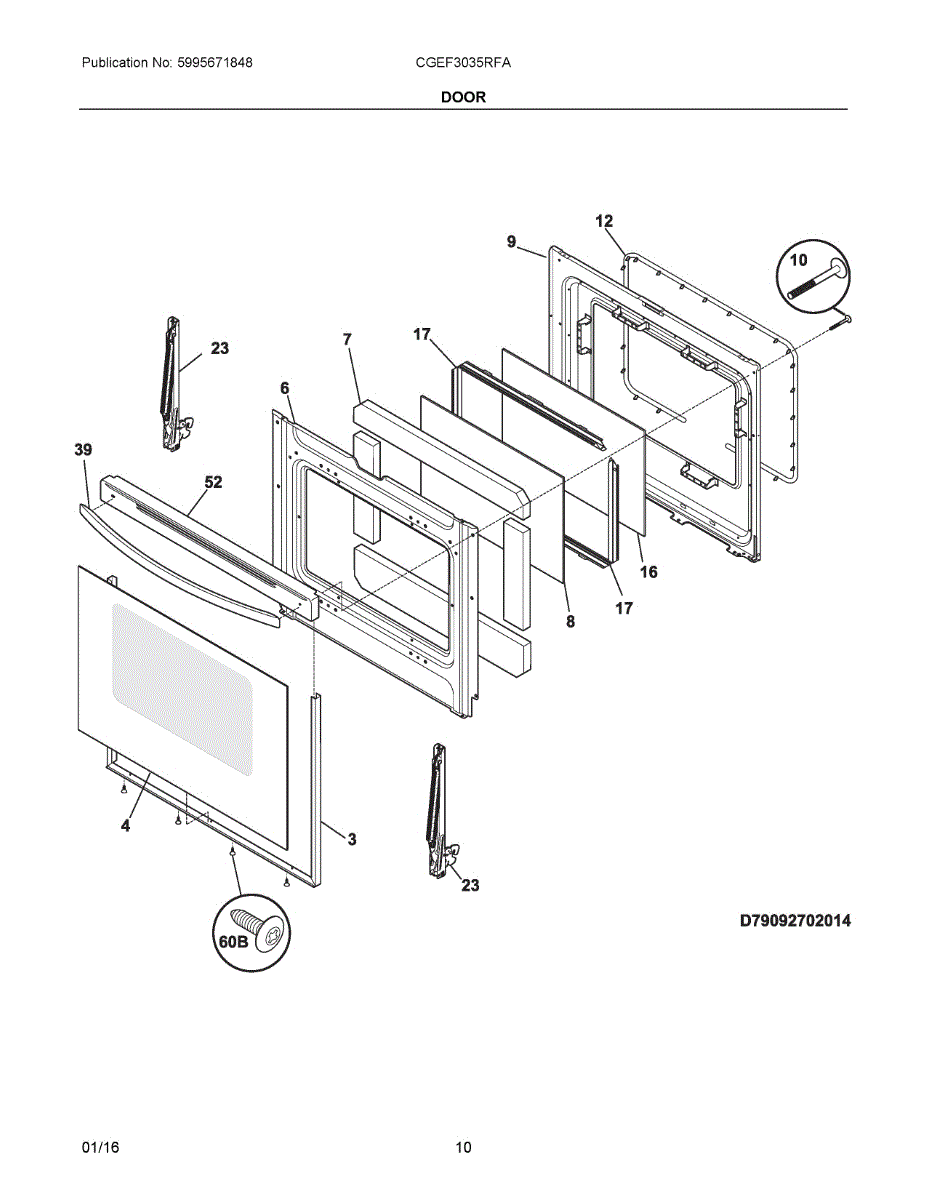 Restores smooth door operation and proper seal. Replace when door sags, won't close flush, or hinge is bent. Confirm fit with your model number.