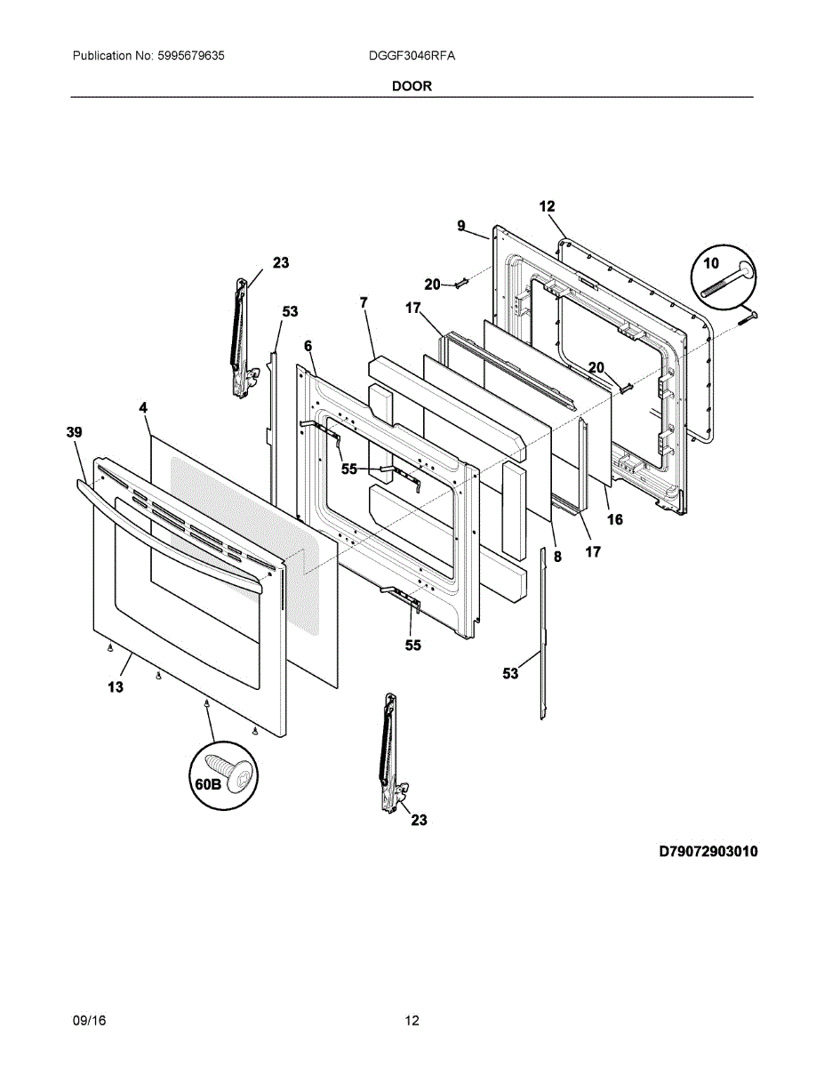 Parts for Electrolux DGGF3046RFA: 06 - Door Parts