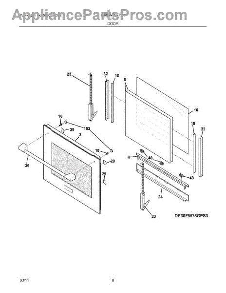 Parts for Electrolux E30EW75GPS4: 07 - Door Parts