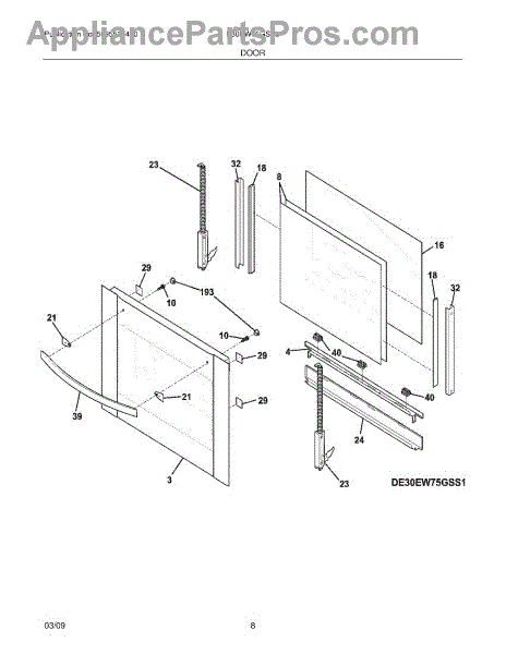 Parts for Electrolux E30EW75GSS2: 07 - Door Parts