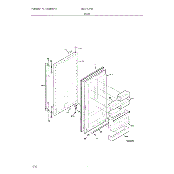 This bin door is the hinged cover for a door storage bin. It restores a secure flip-down barrier that keeps items contained and helps prevent spills when you open or close the appliance door.