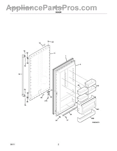 This bin door is the hinged cover for a door storage bin. It restores a secure flip-down barrier that keeps items contained and helps prevent spills when you open or close the appliance door.