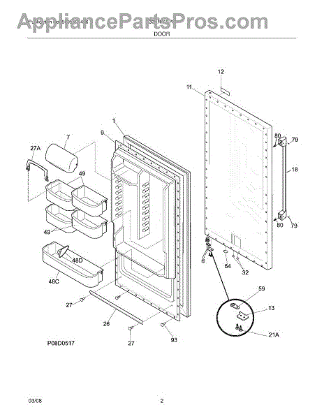 Parts for Electrolux E32AR75FPS1: 03 - Door Parts