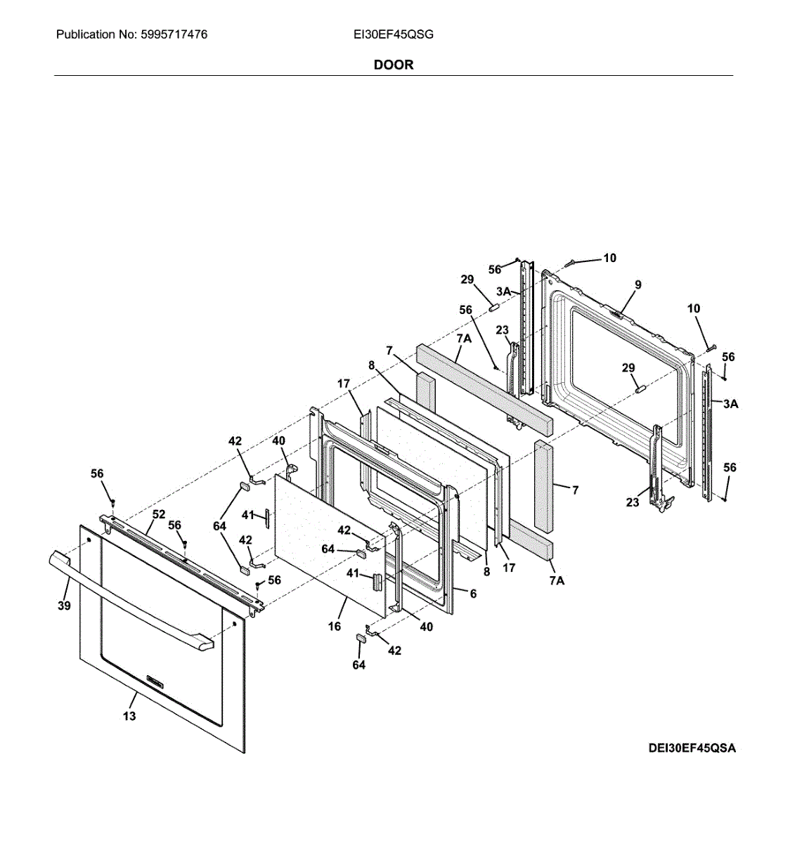 Inner door glass panel for range and wall oven doors. Replace if cracked, shattered, or slipped out of position. Installs between outer glass and oven cavity.