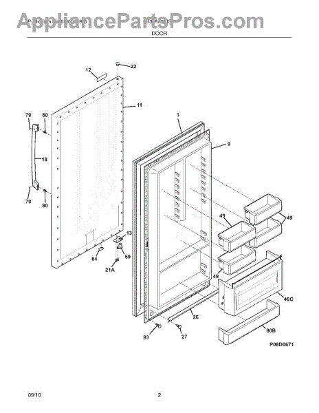 This bin door is the hinged cover for a door storage bin. It restores a secure flip-down barrier that keeps items contained and helps prevent spills when you open or close the appliance door.