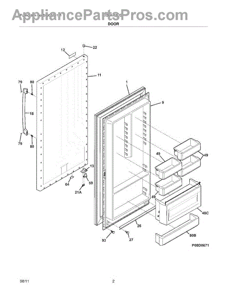 This bin door is the hinged cover for a door storage bin. It restores a secure flip-down barrier that keeps items contained and helps prevent spills when you open or close the appliance door.