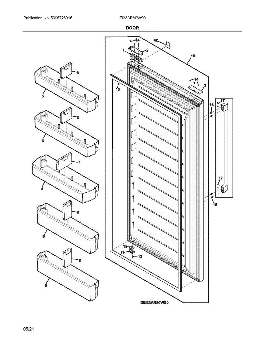 Complete refrigerator door assembly restores sealing and appearance. Replace when door is damaged, warped, or won't seal. Verify fit with your model number.