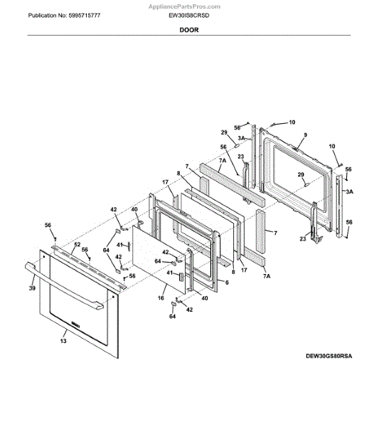 Parts for Electrolux EW30IS8CRSD: Door Parts