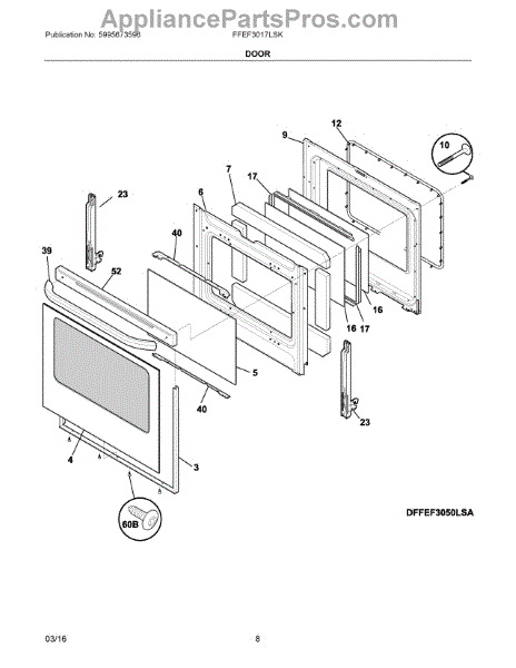 Parts for Electrolux FFEF3017LSK: 05 - Door Parts