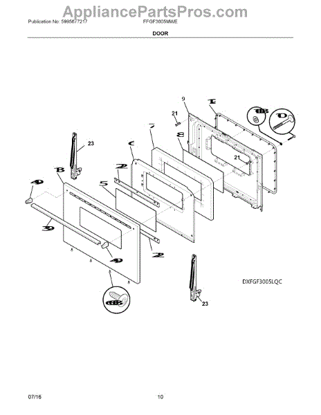 Parts for Electrolux FFGF3005MWE: 06 - Door Parts