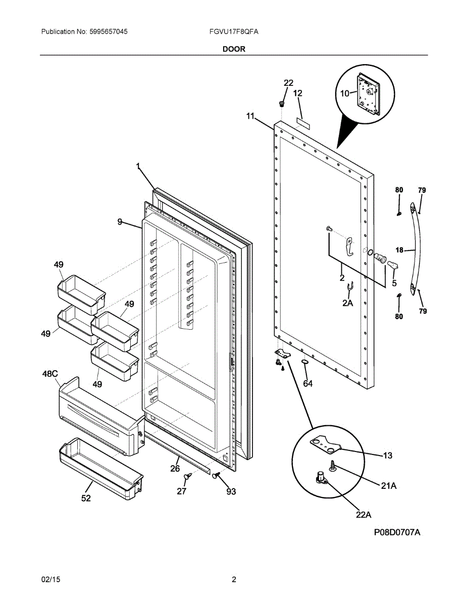 Door bin attaches to the freezer inner door panel to store bottles, jars, and small items. Replace when cracked, broken, or missing for organized storage.