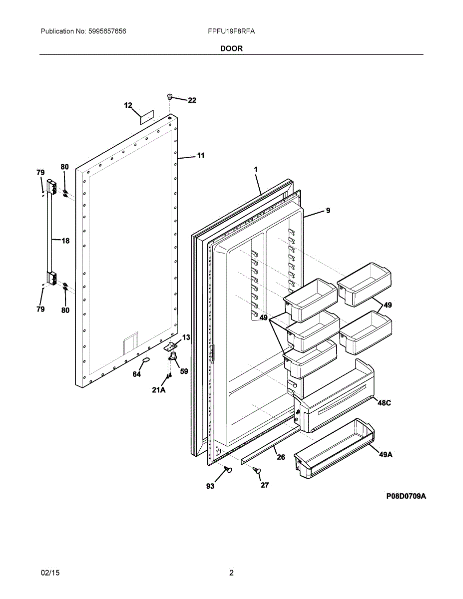 Door bin attaches to the freezer inner door panel to store bottles, jars, and small items. Replace when cracked, broken, or missing for organized storage.