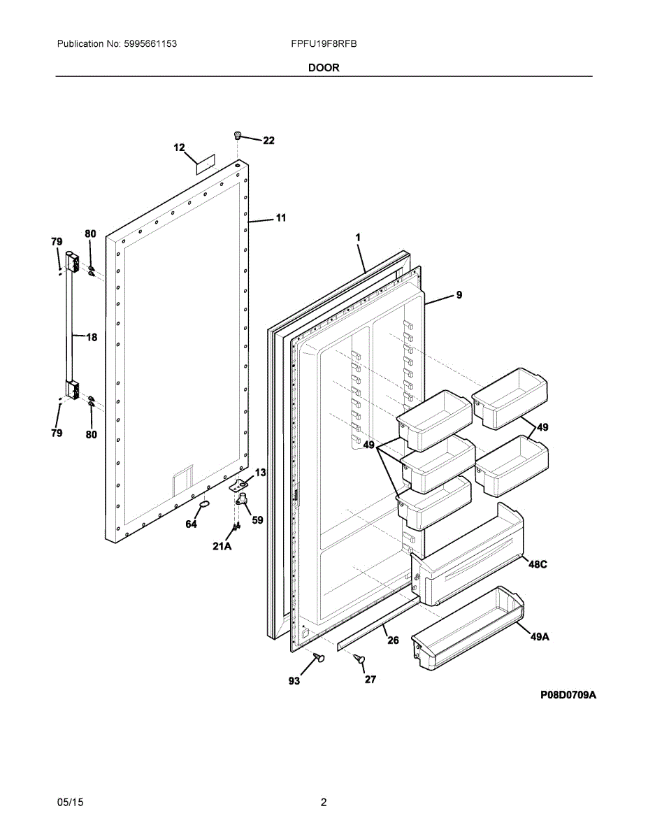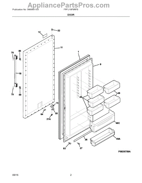 The Door Bin is an OEM replacement part for Frigidaire refrigerators. It is an internal door that controls access to the bin storage compartment. This bin area provides additional shelving and can be used to neatly organize larger refrigerated items. This shelf measures approximately 14.25 x 6 inches. Causes of a bad door bin can include damage to the hinges from frequent opening and closing or impact from heavy items, issues with the door latch or magnets not securely holding the door in closed position. Symptoms of a bad bin include: