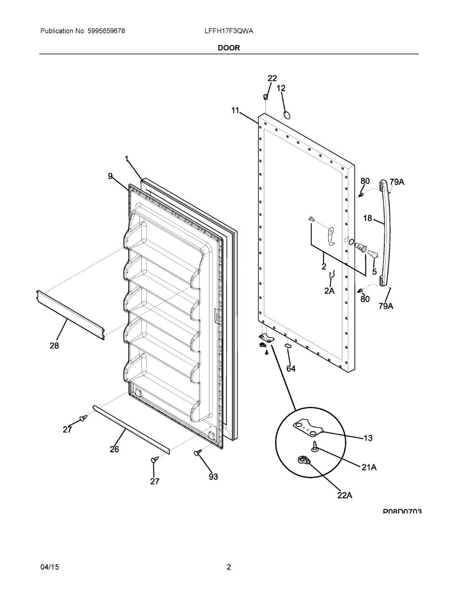 Secures door handle to refrigerator door. Replace if missing, stripped, rusted, or corroded from regular use. Essential hardware for handle installation.