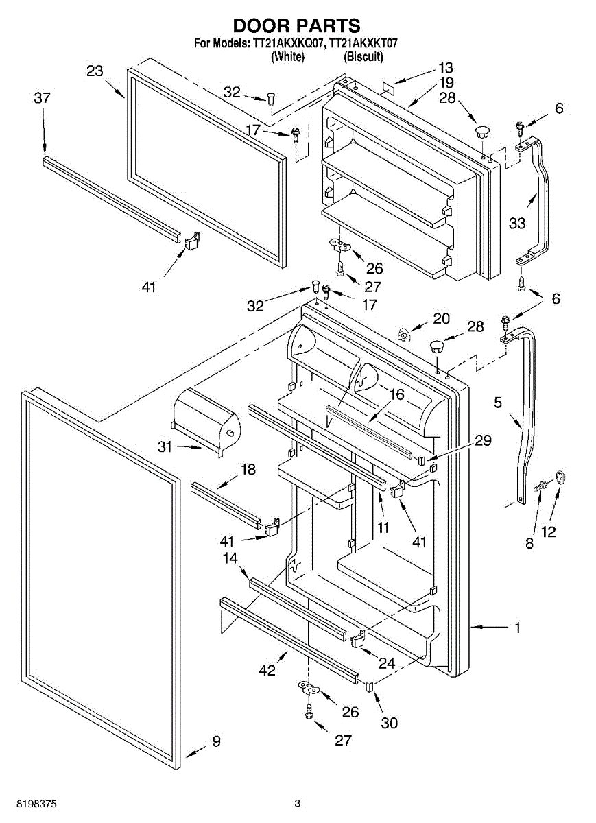 Parts for Estate TT21AKXKQ07: 02 - Door Parts
