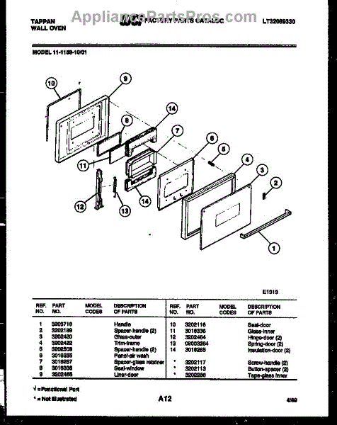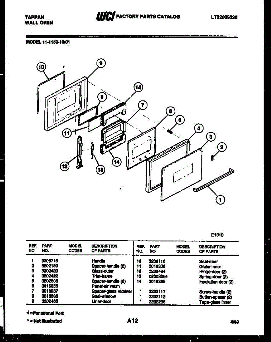 Parts for Frigidaire 11-1159-00-01: 03 - Door Parts