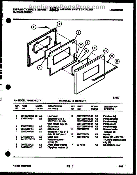 Parts for Frigidaire 11-1553-00-04: 03 - Door Parts