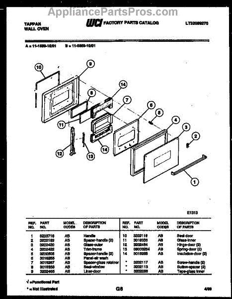 Parts for Frigidaire 11-1559-00-01: 03 - Door Parts