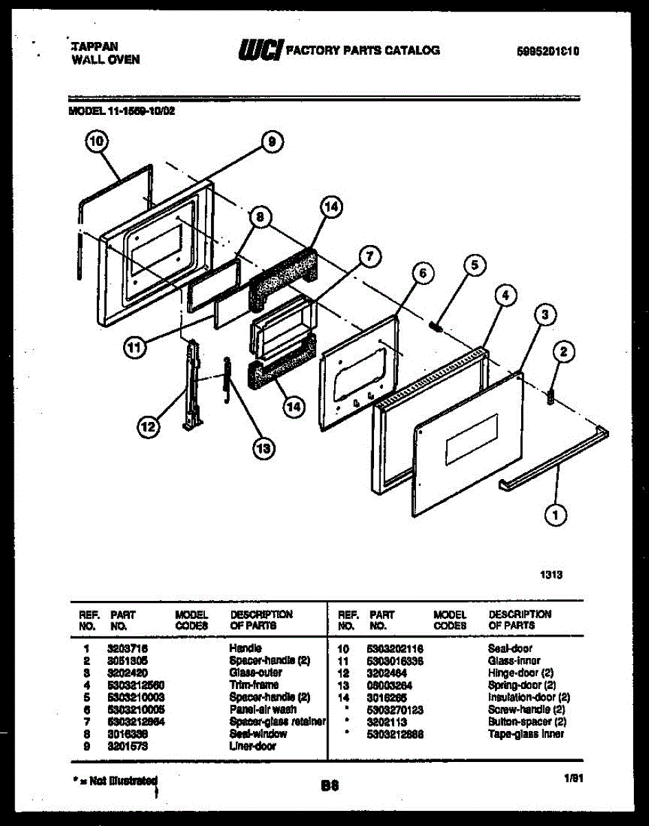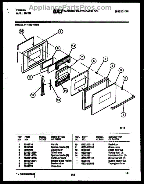 Parts for Frigidaire 11-1559-00-02: 03 - Door Parts
