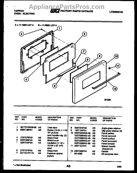 Parts for Frigidaire 11-1653-23-04: 04 - Door Parts