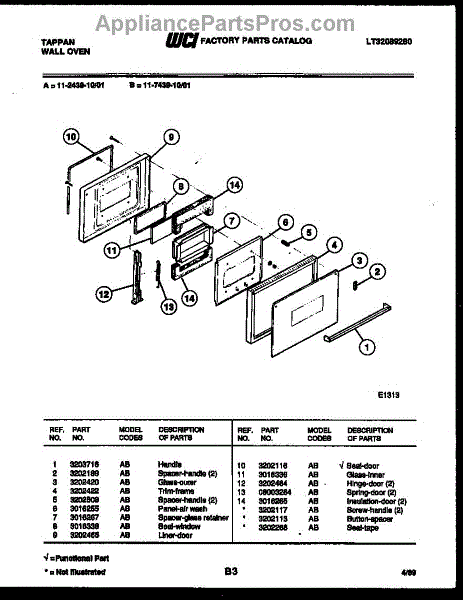 Parts for Frigidaire 11-2439-00-01: 03 - Door Parts