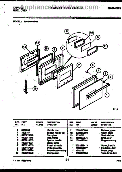Parts for Frigidaire 11-4989-00-04: 03 - Door Parts