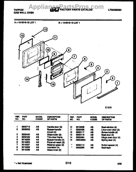 Parts for Frigidaire 12-3219-00-01: 03 - Door Parts