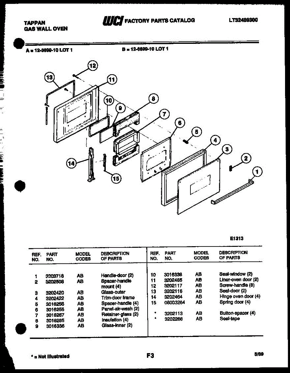 Parts for Frigidaire 12-3699-00-01: 03 - Door Parts