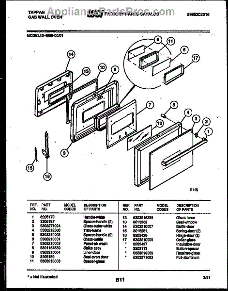Parts for Frigidaire 12-4990-00-01: 03 - Door Parts