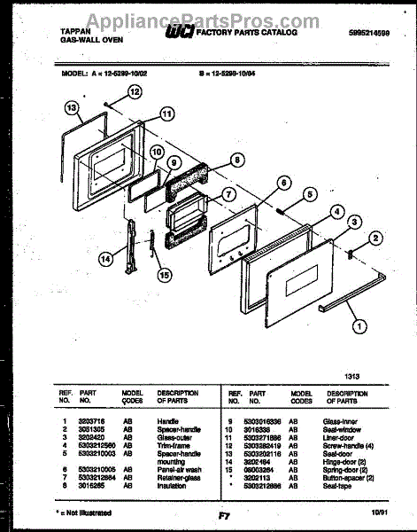 Parts for Frigidaire 12-5299-00-02: 04 - Door Parts