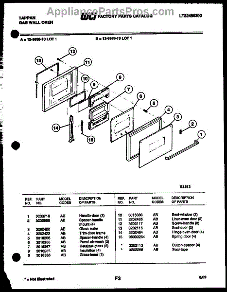 Parts for Frigidaire 12-6699-00-01: 03 - Door Parts